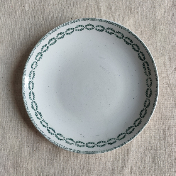 Joli liseré vert et couronne de feuilles de laurier.