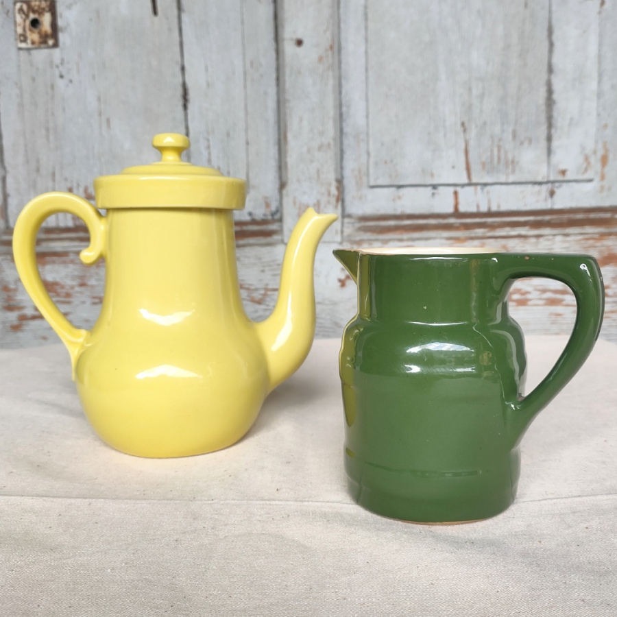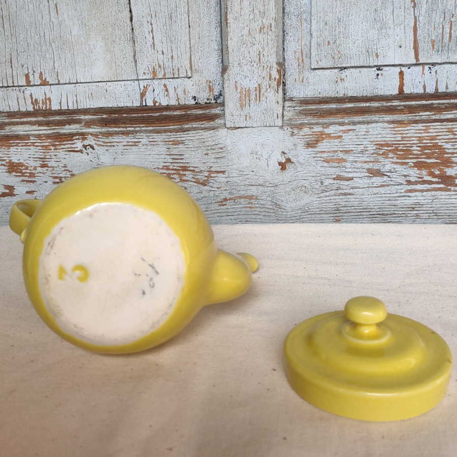 Jolie théière vintage en céramique jaune vernie.